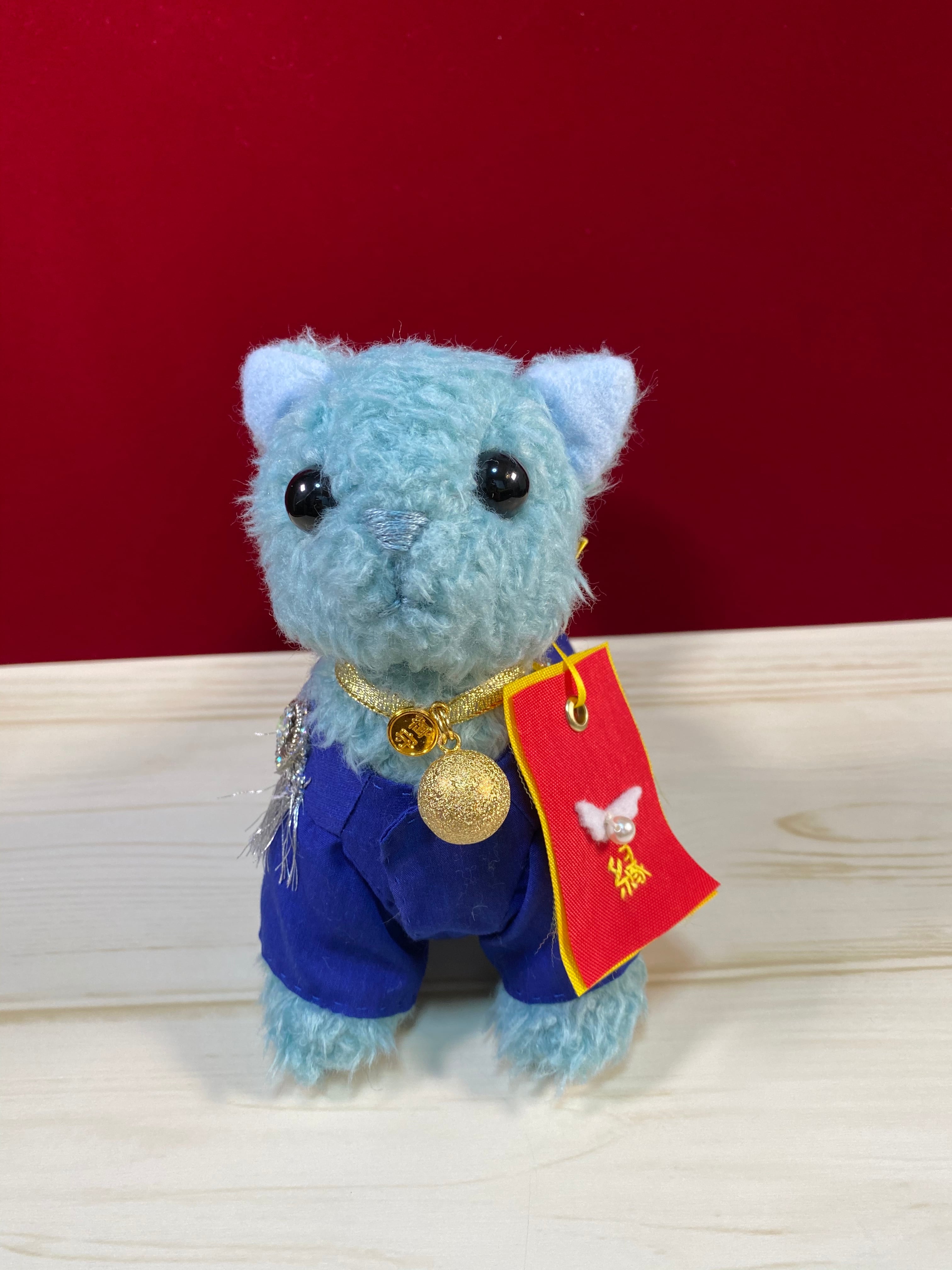 幸せを呼ぶ青い動物のぬいぐるみです。